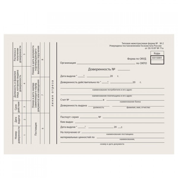| Вид бланка | Доверенность |