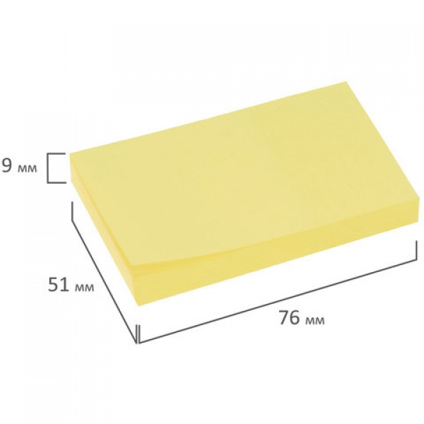Блок самоклеящийся (стикеры) BRAUBERG, ПАСТЕЛЬНЫЙ, 76х51 мм, 100 листов, желтый, 122689