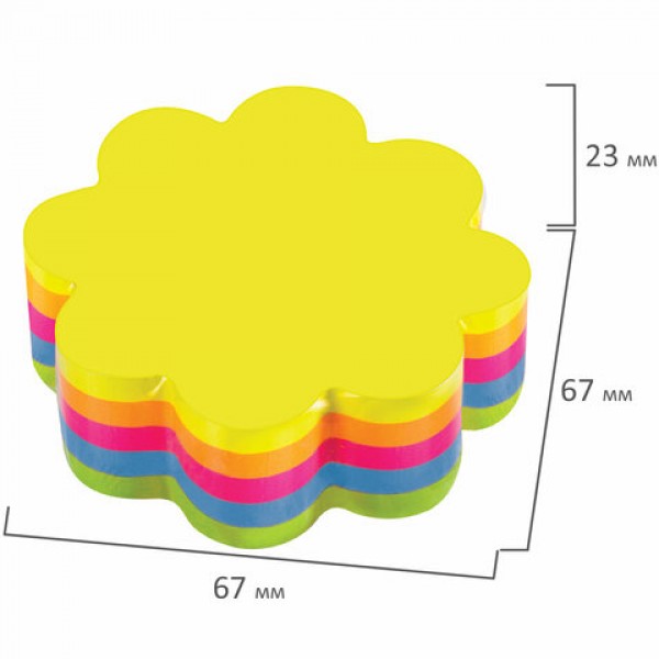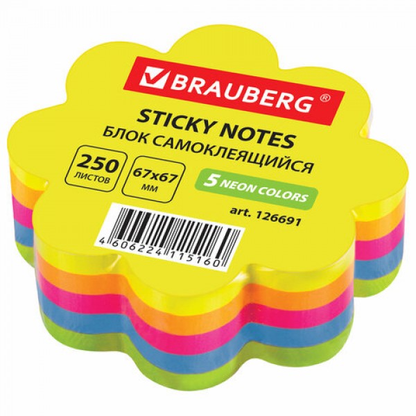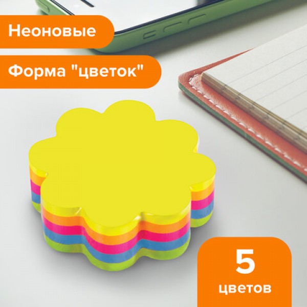 Блок самоклеящийся (стикеры), фигурный, BRAUBERG, НЕОНОВЫЙ 'Цветок', 250 листов, 5 цветов, 126691