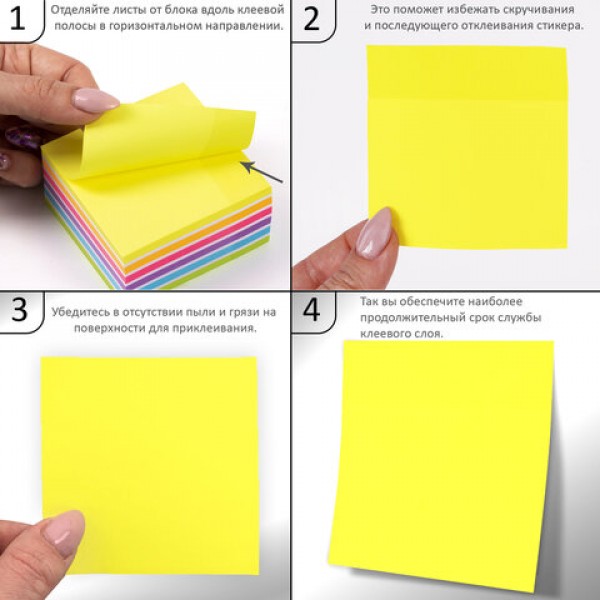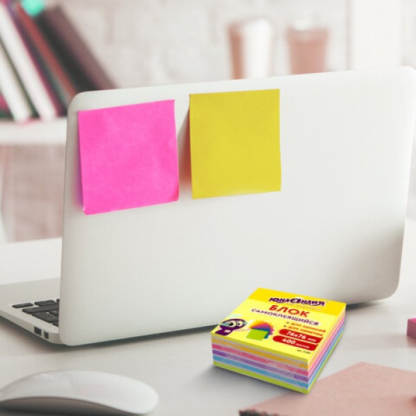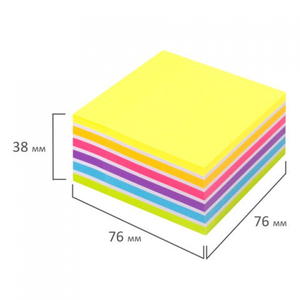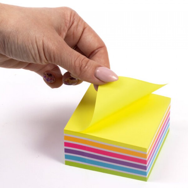 Блок самоклеящийся (стикеры) ЮНЛАНДИЯ НЕОНОВЫЙ 76х76 мм, 400 листов, 7 цветов, 111351