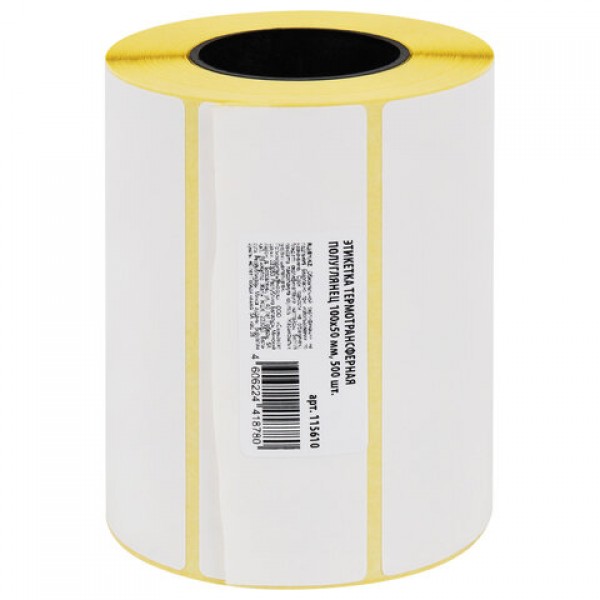 Этикетка термотрансферная ПОЛУГЛЯНЕЦ (100х50 мм), 500 этикеток в ролике, 115610