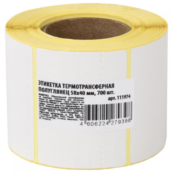 Этикетка термотрансферная ПОЛУГЛЯНЕЦ (58х40 мм), 700 этикеток в ролике, 52201