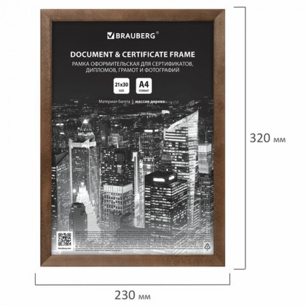 Рамка BRAUBERG "Elegant" для фотографий, дипломов, сертификатов, грамот и других ценных документов гармонично будет смотреться как в офисном, так и в домашнем интерьере, а также в салонах и предприятиях, в магазинах и различных учреждениях.