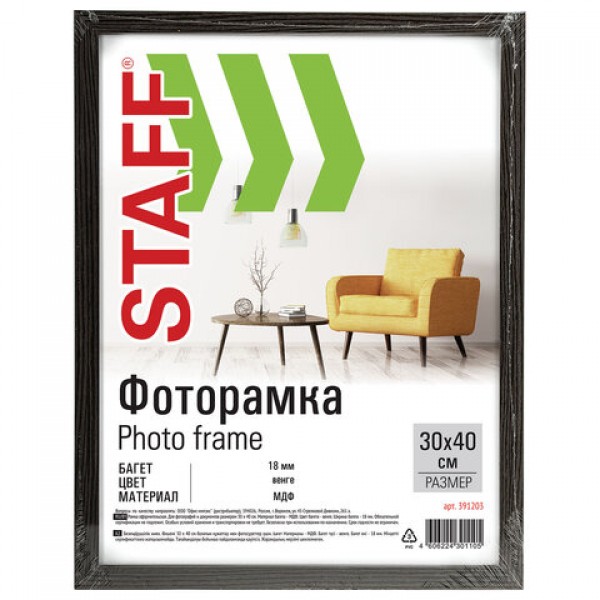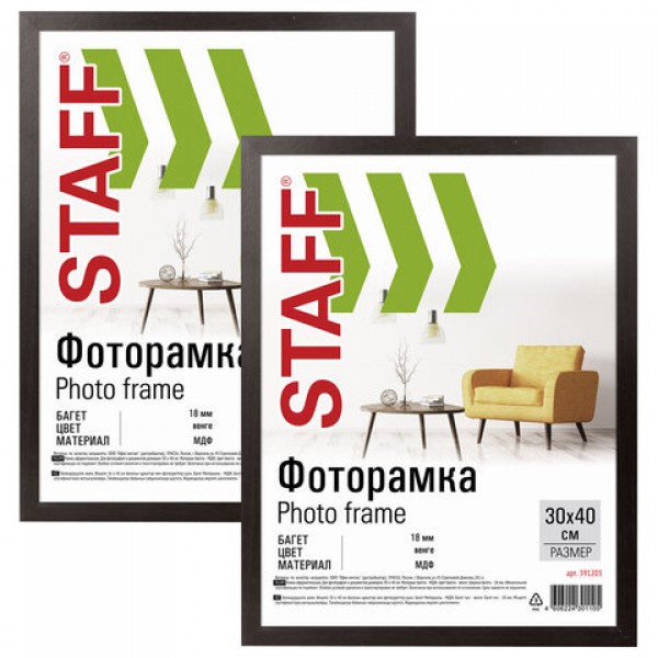 Рамка 30х40 см небьющаяся, КОМПЛЕКТ 2 штуки, багет 18 мм, МДФ, STAFF 'Grand', цвет венге, 391336