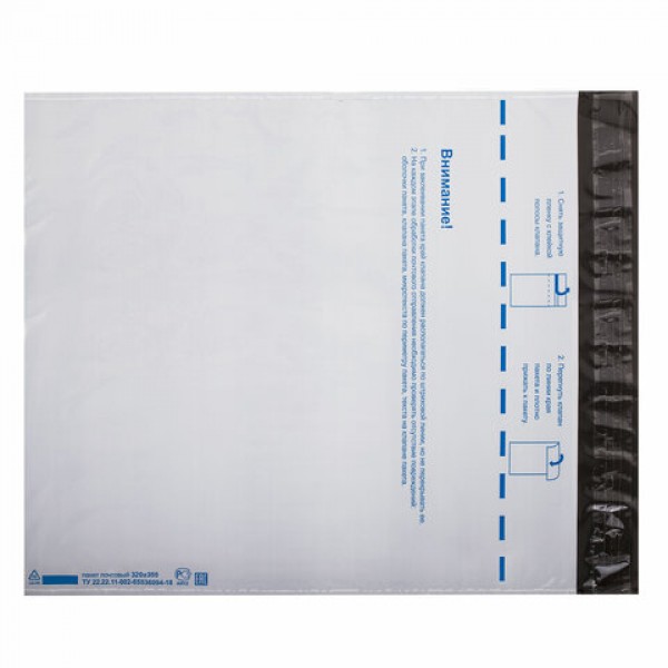 Конверт-пакеты ПОЛИЭТИЛЕН C3 (320х355 мм) до 500 л., отрывная лента, 'Куда-Кому', КОМПЛЕКТ 50 шт., BRAUBERG, 112206