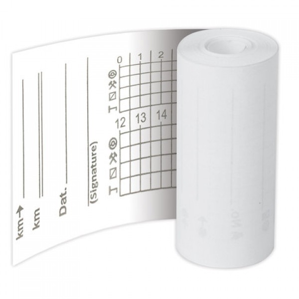 Предназначены для печати данных о режиме труда и отдыха водителя. На обратной стороне ленты нанесена сетка с метками времени и пиктограммами для записи данных вручную (в случае выхода тахографа из строя). Подходят для всех типов цифровых тахографов.