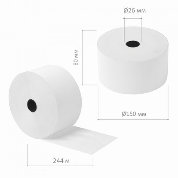 Чековая лента ТЕРМОБУМАГА 80 мм (диаметр 150 мм, длина 244 м, втулка 26 мм) слой наружу, BRAUBERG, 110560