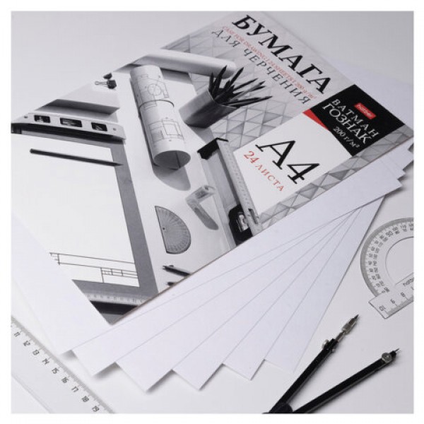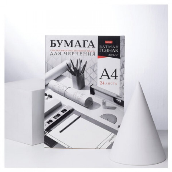 Папка для черчения А4 210х297 мм, 24 л. 200 г/м2, без рамки, ватман ГОЗНАК, HATBER, 090027, 24Бч4A_33350