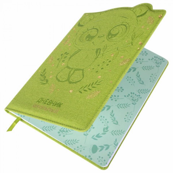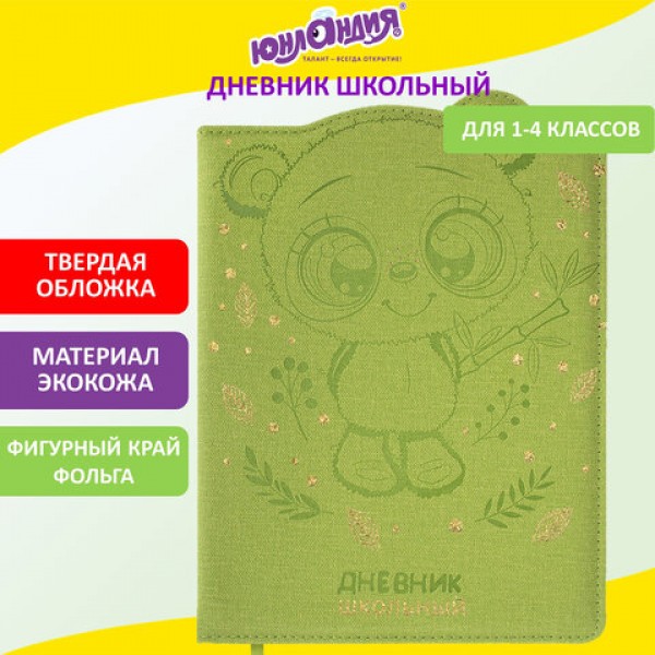 Дневник 1-4 класс 48 л., кожзам (твердая с поролоном), фигурный край, фольга, ЮНЛАНДИЯ, 'Панда', 106182