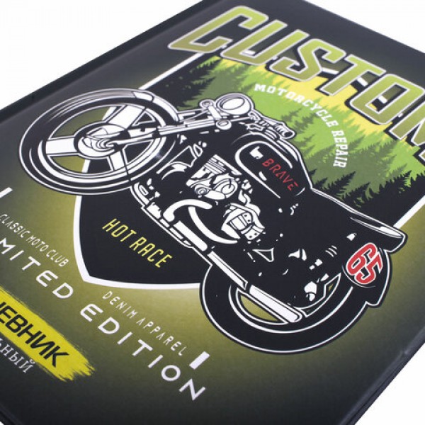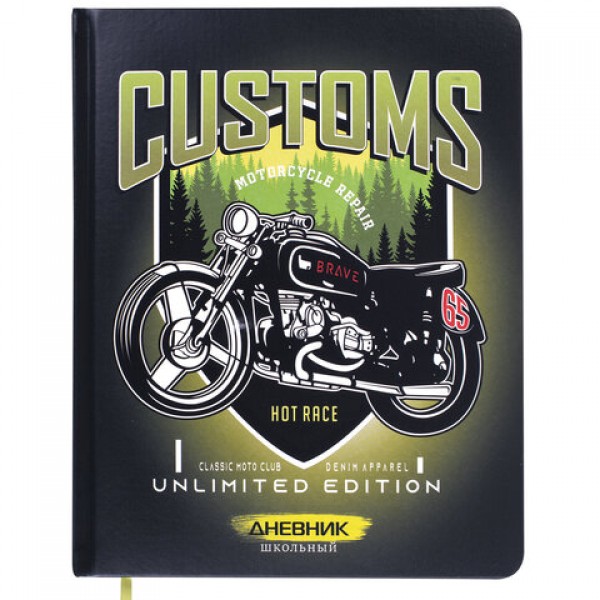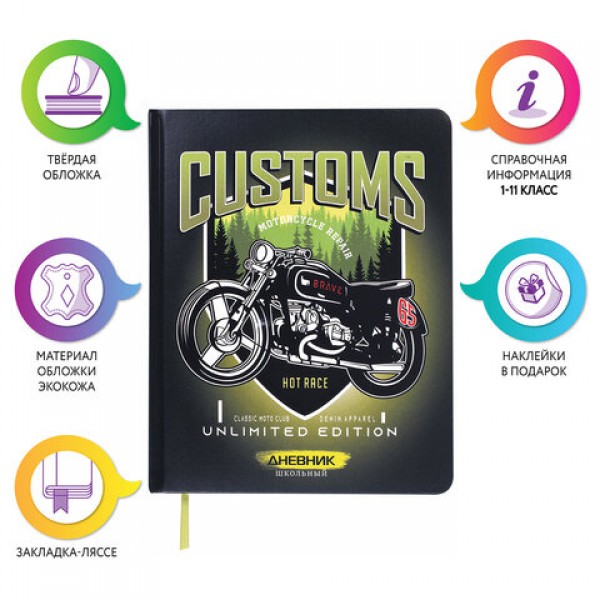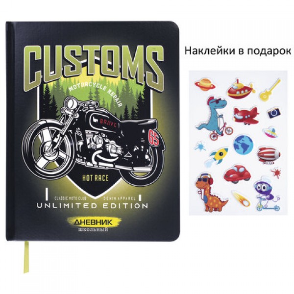 Дневник 1-4 класс 48 л., кожзам (твердая с поролоном), печать, наклейки, ЮНЛАНДИЯ, 'Мотоцикл', 106186