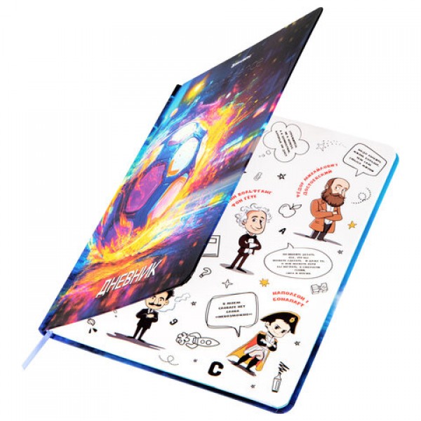 Дневник 1-11 класс 48 л., твердый, BRAUBERG, матовая ламинация, резинка, закладка-ляссе, с подсказом, 'Футбол', 107235