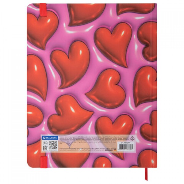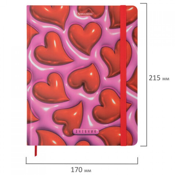 Дневник 1-11 класс 48 л., твердый, BRAUBERG, матовая ламинация, резинка, закладка-ляссе, с подсказом, 'Сердечки', 107241