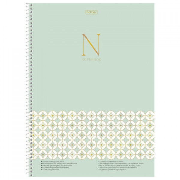 Тетрадь А4, 160 л., HATBER, спираль, клетка, обложка твердая, глянцевая, 4 разделителя, 'Графика-N', 094234, 160Ттр4В1сп_355