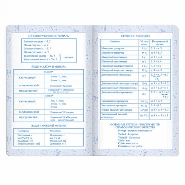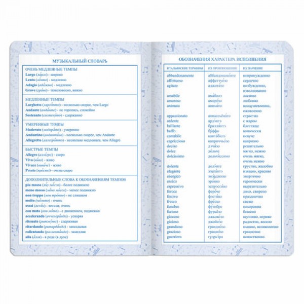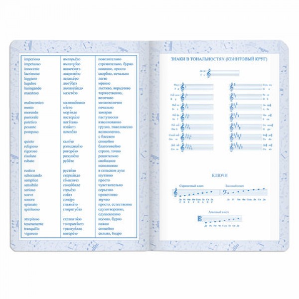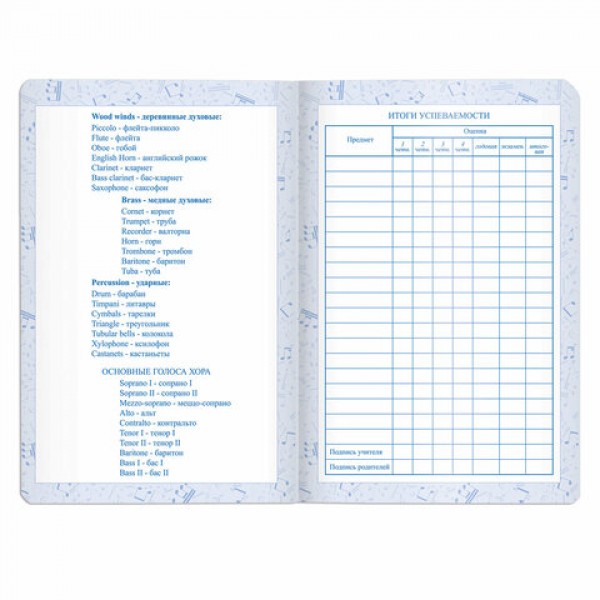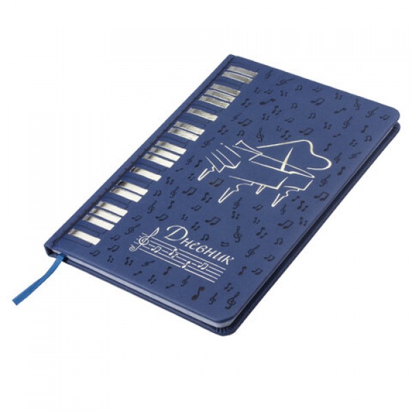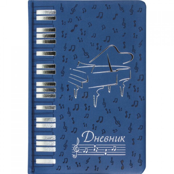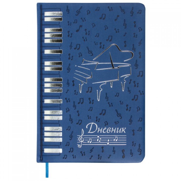 Дневник для музыкальной школы 140х210 мм, 48 л., обложка кожзам твердая, фольга, BRAUBERG, справочный материал, темно-синий, 105500