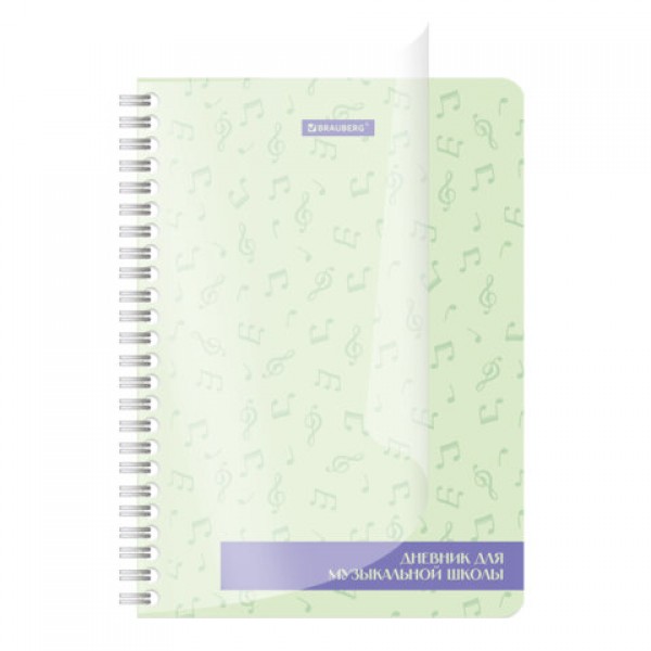 Дневник для музыкальной школы 48 листов, гребень, пластиковая обложка, картон, BRAUBERG, 'МИКС', 107519