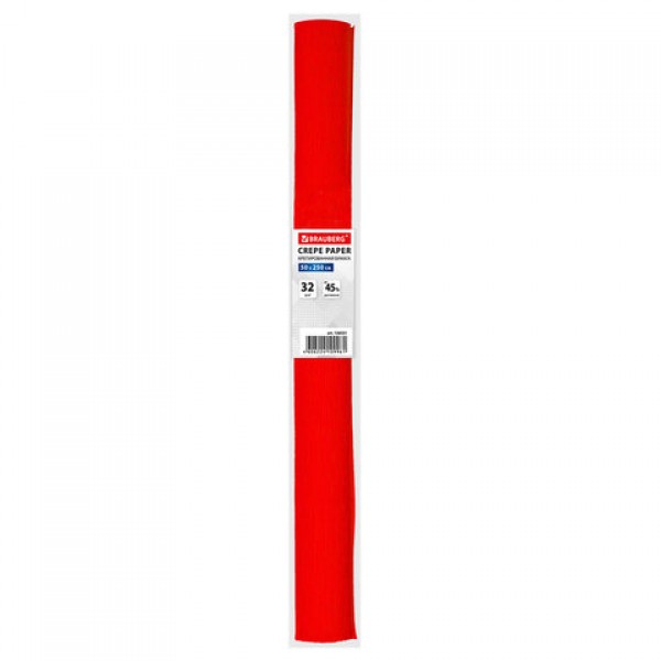 Бумага гофрированная/креповая, 32 г/м2, 50х250 см, красная, в рулоне, BRAUBERG, 126531