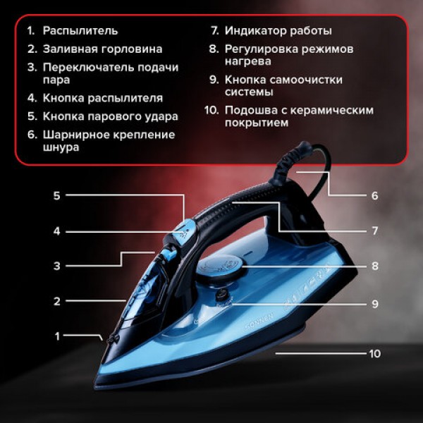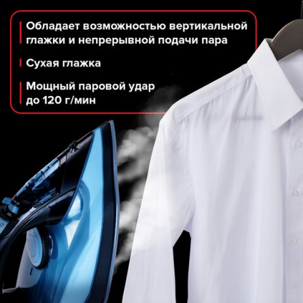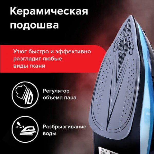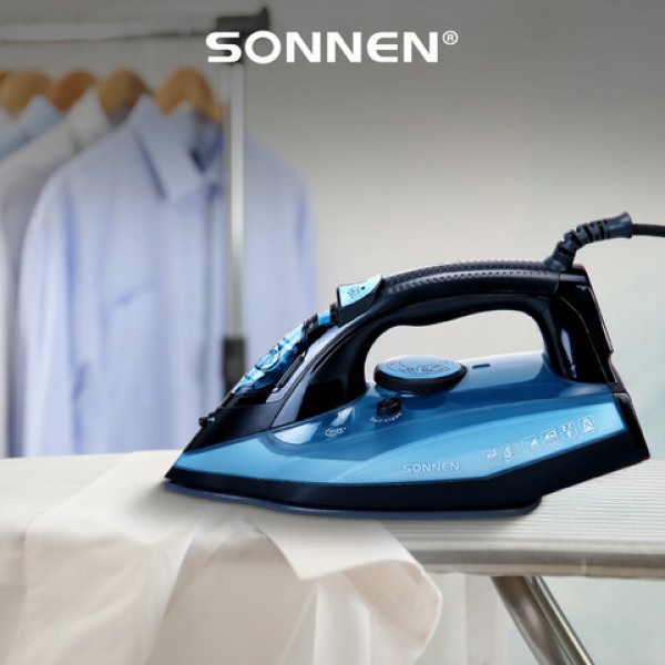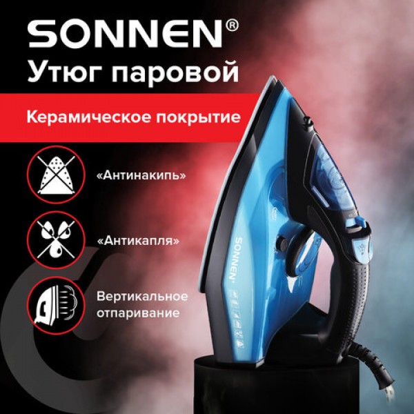 Утюг паровой SONNEN SI-2099, 2400 Вт, керамическое покрытие, антикапля, антинакипь, синий, 456996