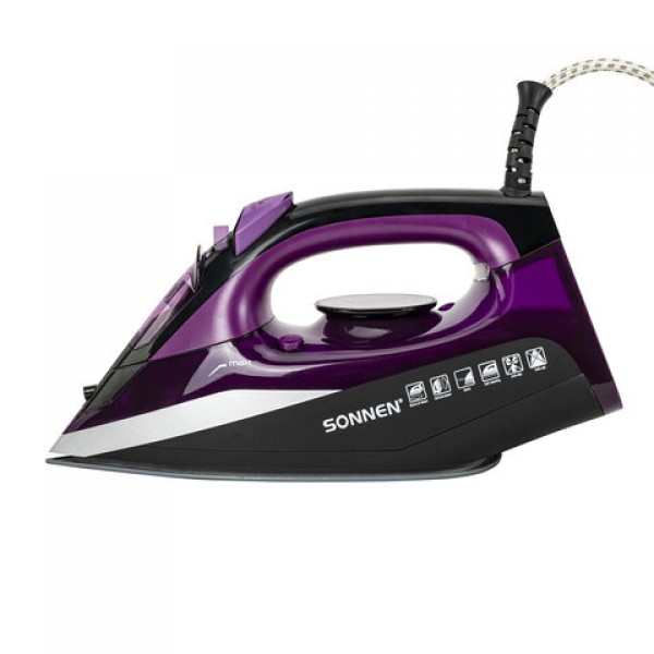 Утюг SONNEN SI-270, 2600 Вт, керамическое покрытие, антикапля, антинакипь, черный/фиолетовый, 455280