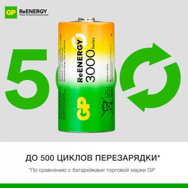 Батарейки аккумуляторные GP ReEnergy Ni-Mh КОМПЛЕКТ 2 шт., С (HR14), 3000 mAh, 300CHCRGY-2CRCB2