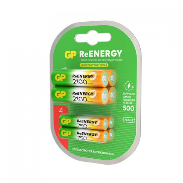 Батарейки аккумуляторные GP ReEnergy Ni-Mh НАБОР 8 шт. (ПРОМО 4+4), AA+ААА (HR6+HR03), 2000 mAh + 750 mAh, 210AAHC/75AAAHC