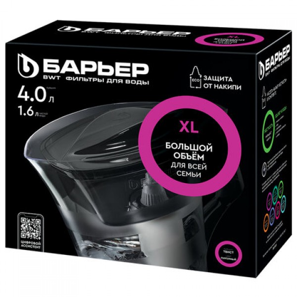 Кувшин-фильтр для очистки воды БАРЬЕР 'Твист', 4 л, со сменной кассетой, пурпурный, В178Р00