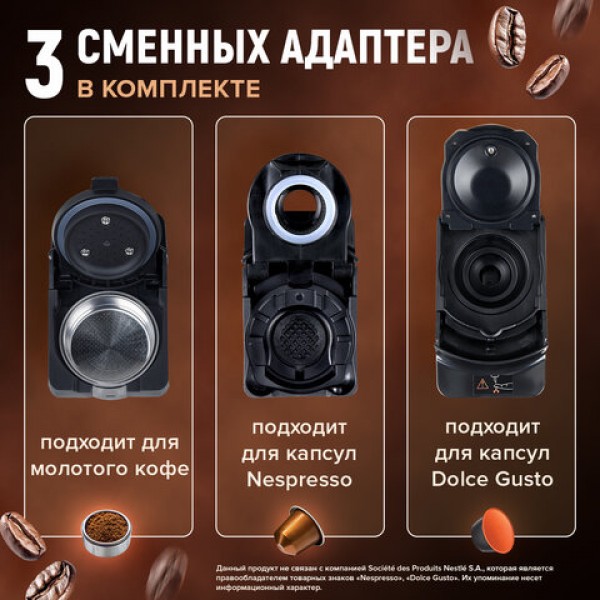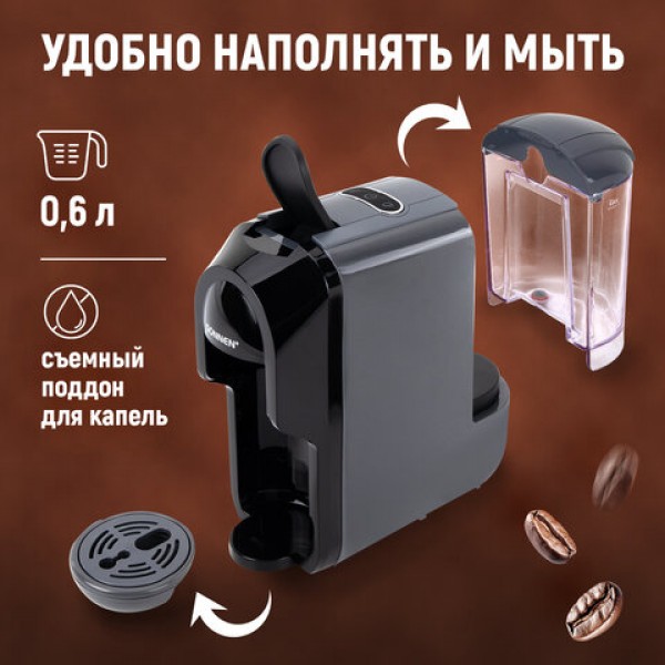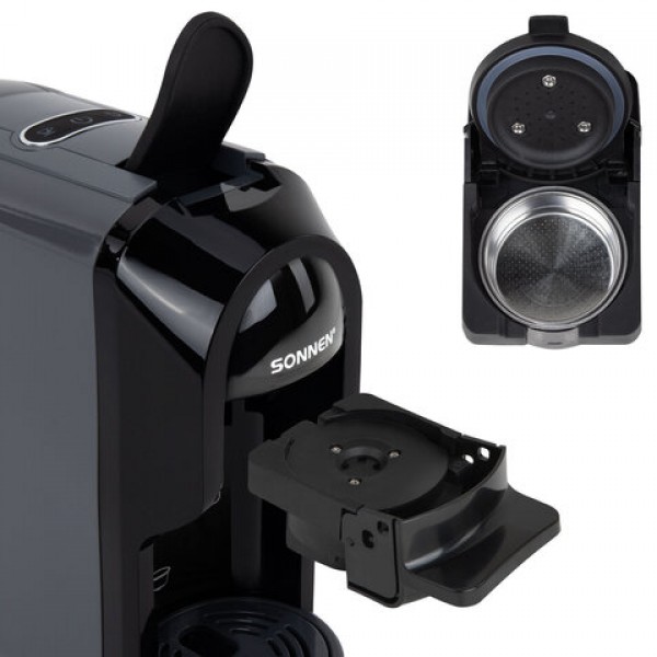 Кофемашина капсульная 3 в 1 для молотого кофе и капсул DOLCE GUSTO и NESPRESSO, SONNEN CM510G, 1450 Вт, 0,6 л, графит, 457339