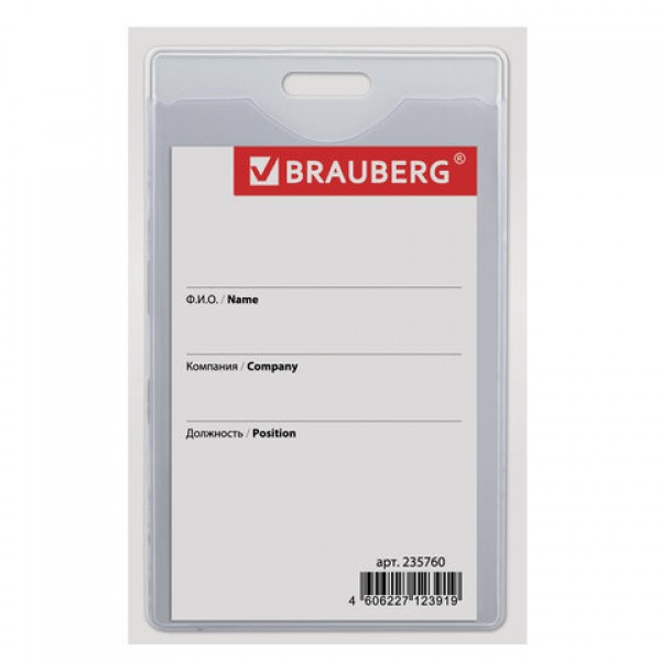 Вертикальный бейдж BRAUBERG для именной карточки предназначен для идентификации сотрудников в компаниях, а также на семинарах, тренингах, презентациях и других мероприятиях.