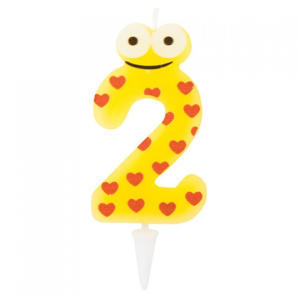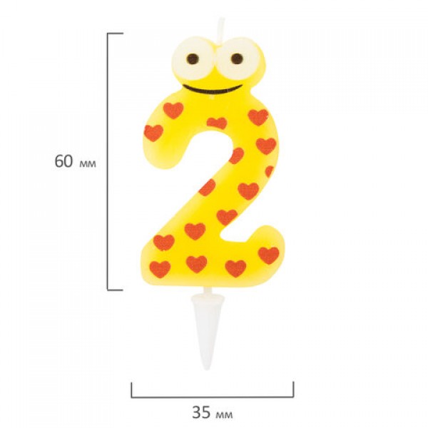 Свеча-цифра для торта '2' 'С глазками', 6 см, ЗОЛОТАЯ СКАЗКА, с держателем, в блистере, 591405