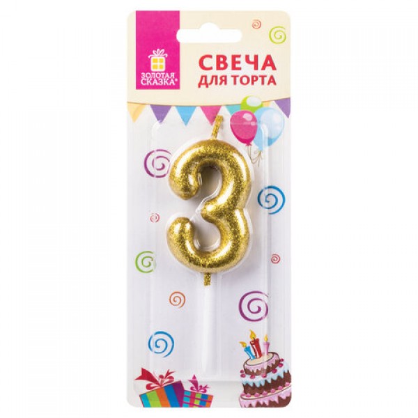 Свечи для торта являются неотъемлемым атрибутом праздника. Свеча-цифра для торта "3" ЗОЛОТАЯ СКАЗКА станет прекрасным украшением торта и других кондитерских изделий по случаю дня рождения, юбилея и любого другого торжества.