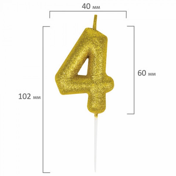 Свеча-цифра для торта '4' золотая с глиттером, 6 см, ЗОЛОТАЯ СКАЗКА, на шпажке, в блистере, 591417