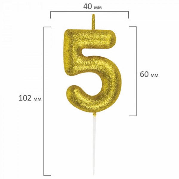 Свеча-цифра для торта '5' золотая с глиттером, 6 см, ЗОЛОТАЯ СКАЗКА, на шпажке, в блистере, 591418