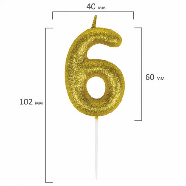 Свеча-цифра для торта '6' золотая с глиттером, 6 см, ЗОЛОТАЯ СКАЗКА, на шпажке, в блистере, 591419