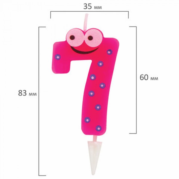 Свеча-цифра для торта '7' 'С глазками', 6 см, ЗОЛОТАЯ СКАЗКА, с держателем, в блистере, 591410
