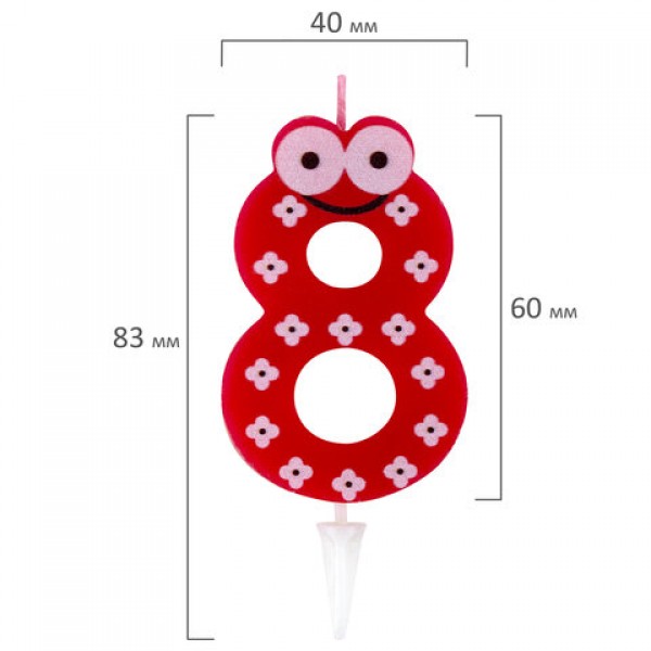 Свечи для торта являются неотъемлемым атрибутом праздника. Свеча-цифра для торта "8" "С глазками" ЗОЛОТАЯ СКАЗКА станет прекрасным украшением торта и других кондитерских изделий по случаю детского дня рождения.
