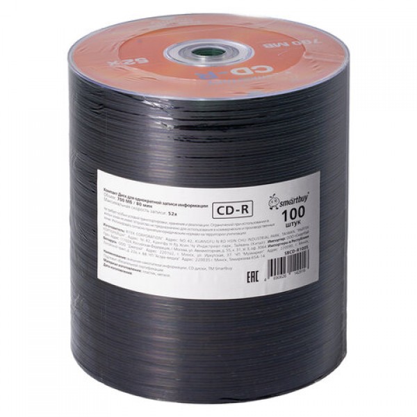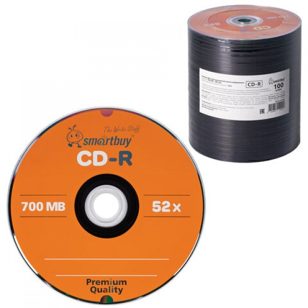 Диски CD-R SMARTBUY, 700 Мб, 52x, Bulk (упаковка на шпиле), КОМПЛЕКТ 100 шт., SBCD-R100S