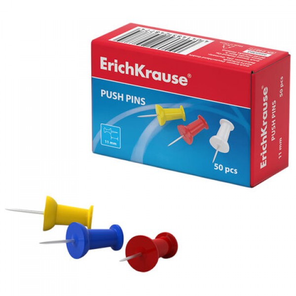 Канцелярские кнопки ERICH KRAUSE надежно крепят бумагу на пробковые, фетровые и другие поверхности.