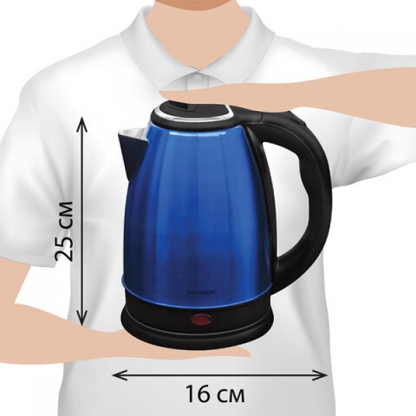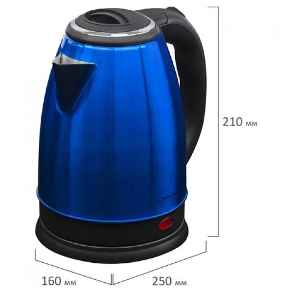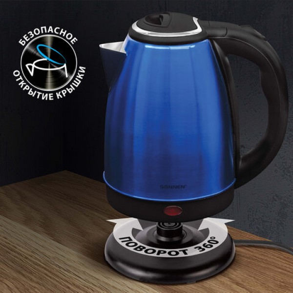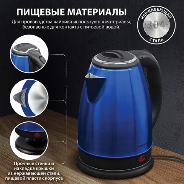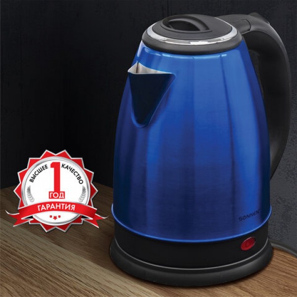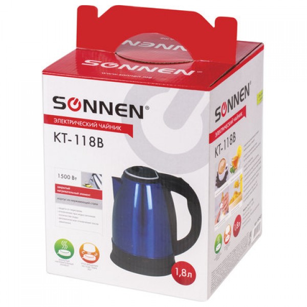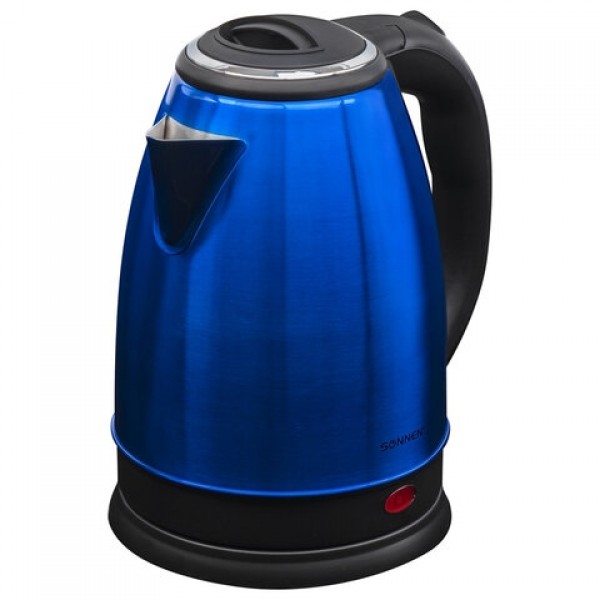 Чайник SONNEN KT-118B, 1,8 л, 1500 Вт, закрытый нагревательный элемент, нержавеющая сталь, синий, 452927