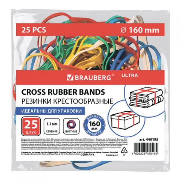 Крестообразные резинки BRAUBERG идеальны для упаковки и могут найти применение как в офисе, так и в быту. Предназначены для фиксации стопок бумаг, книг, папок, блокнотов, дисков и других подобных предметов.
