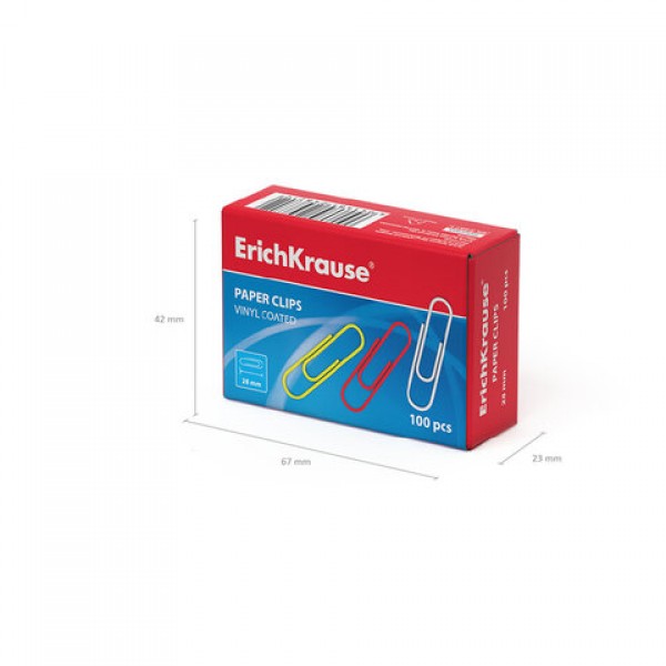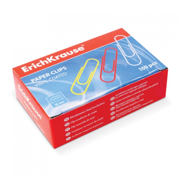 Скрепки металлические ERICH KRAUSE 'Classic', 28 мм, цветные, 100 шт., в картонной коробке, 24871