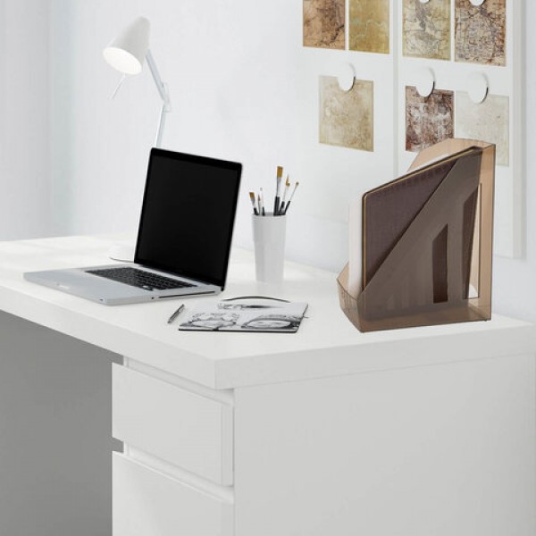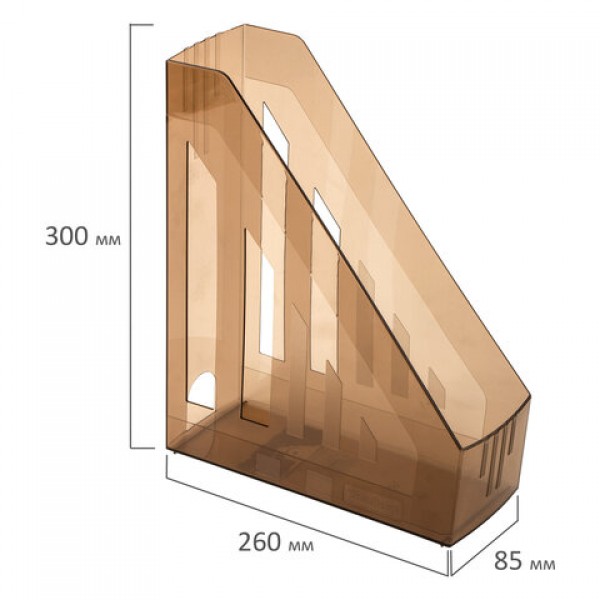 Лоток вертикальный для бумаг BRAUBERG 'Contract' (260х85х300 мм), отверстия на торцах, тонированный, 230892