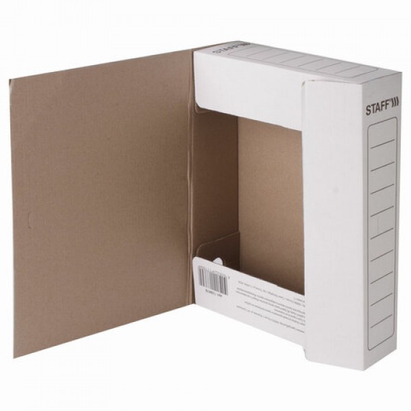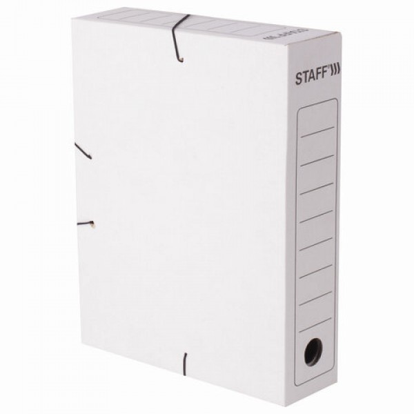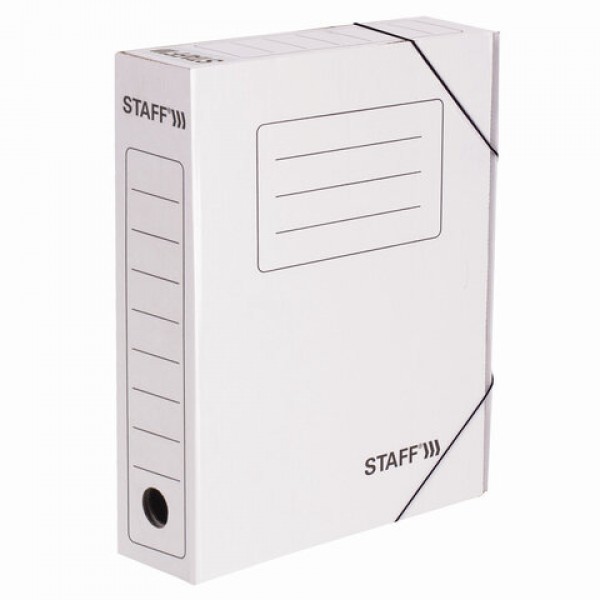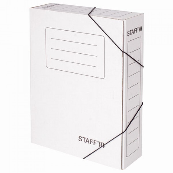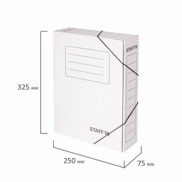 Папка архивная с резинкой А4 (325х250 мм), 75 мм, до 700 листов, микрогофрокартон, БЕЛАЯ, STAFF, 128878