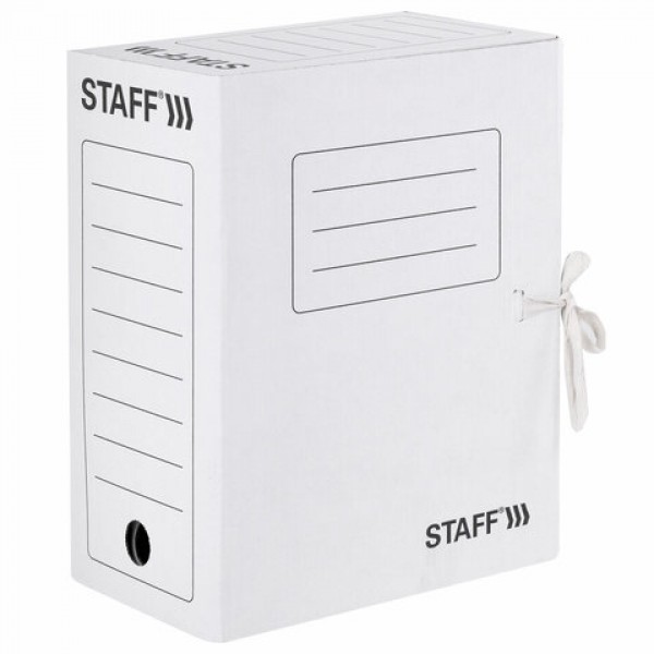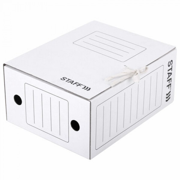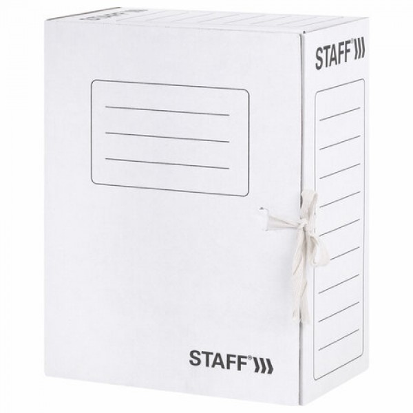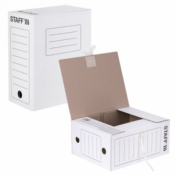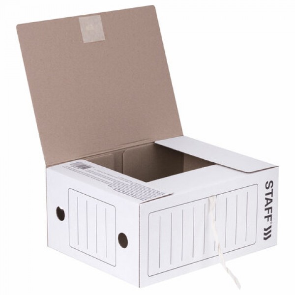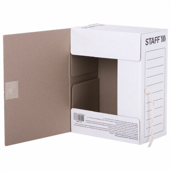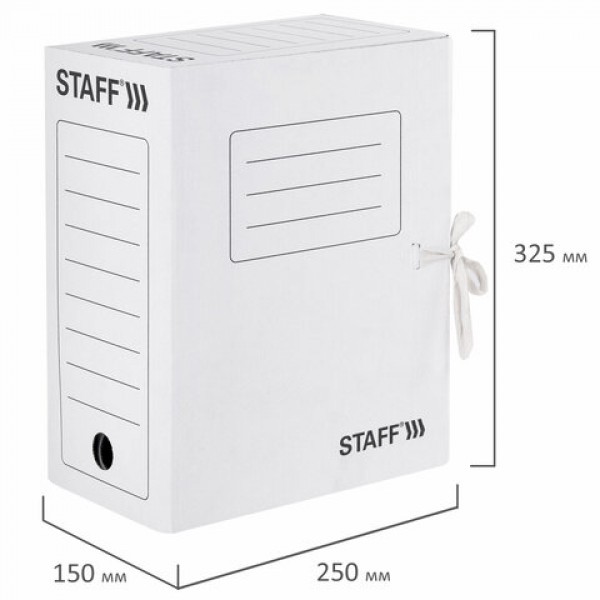 Папка архивная с завязками А4 (325х250 мм), 150 мм, до 1400 листов, микрогофрокартон, БЕЛАЯ, STAFF, 128875