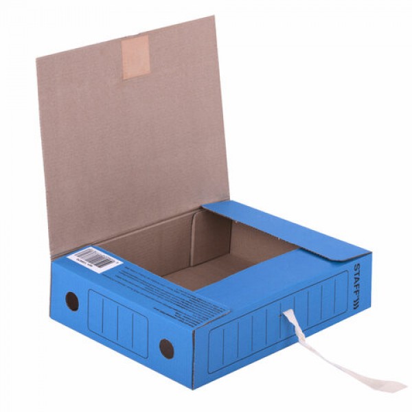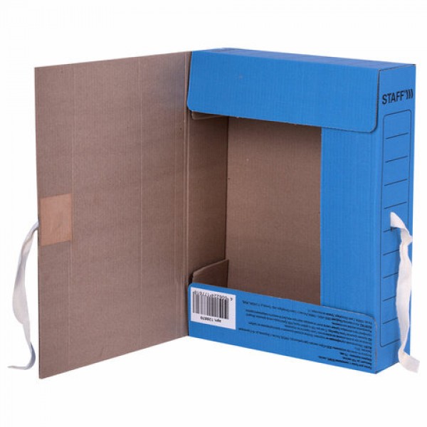 Папка архивная с завязками А4 (325х250 мм), 75 мм, до 700 листов, микрогофрокартон, СИНЯЯ, STAFF, 128870