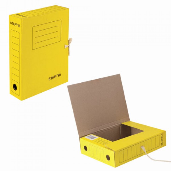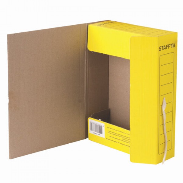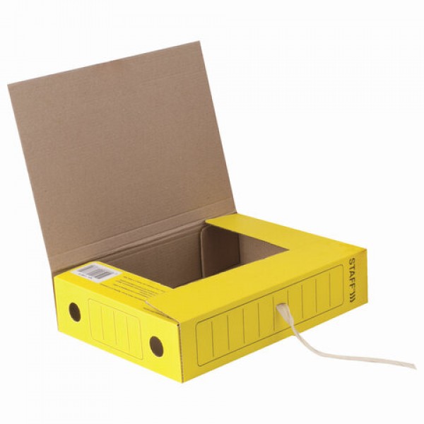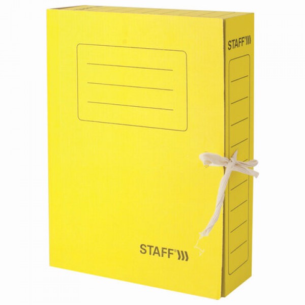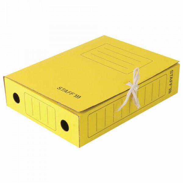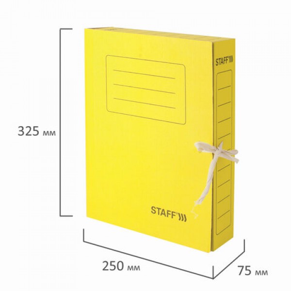 Папка архивная с завязками А4 (325х250 мм), 75 мм, до 700 листов, микрогофрокартон, ЖЕЛТАЯ, STAFF, 128873