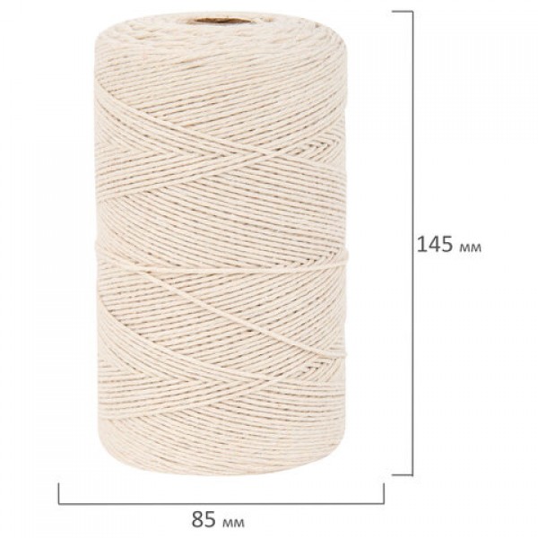 Шпагат хлопковый для прошивки документов, вязания, макраме, длина 500 м, диаметр 1,5 мм, BRAUBERG, 700362