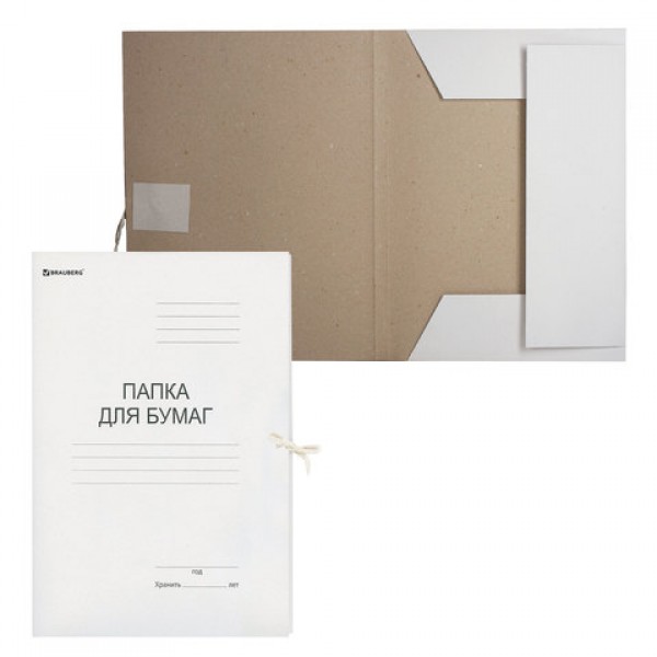 Папка для бумаг BRAUBERG на завязках с цельновырубными клапанами применяется для хранения бумаг и оперативной работы с документами сотрудниками госучреждений, общественных организаций, торговых предприятий и др.