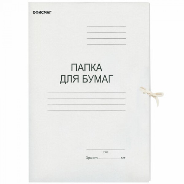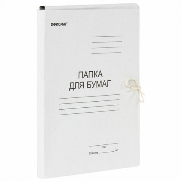 Папка для бумаг с завязками картонная ОФИСМАГ, гарантированная плотность 280 г/м2, до 200 листов, 124569