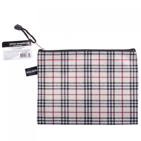 Папка-конверт на молнии BRAUBERG "Checked" идеально подойдет для хранения и транспортировки документов.