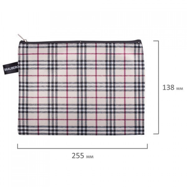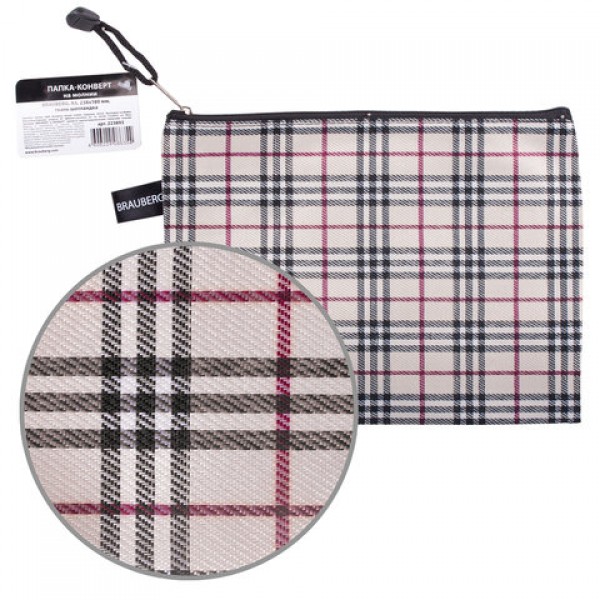 Папка-конверт на молнии МАЛОГО ФОРМАТА (238х180 мм), А5, ткань в клетку, BRAUBERG 'Checked', 223893