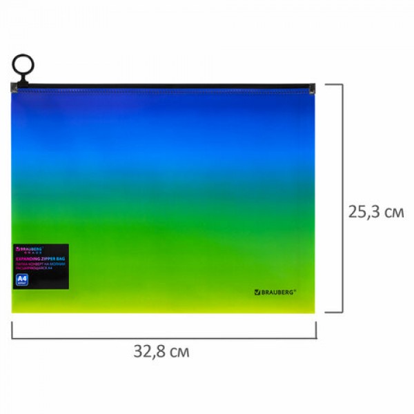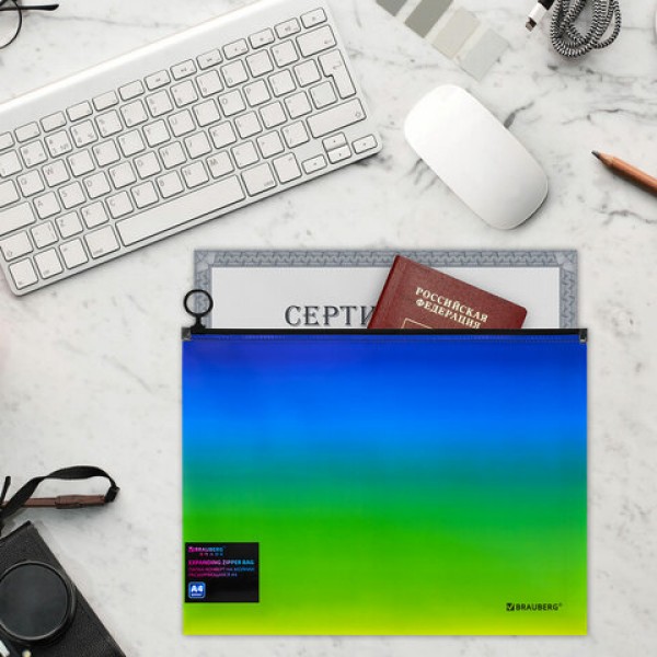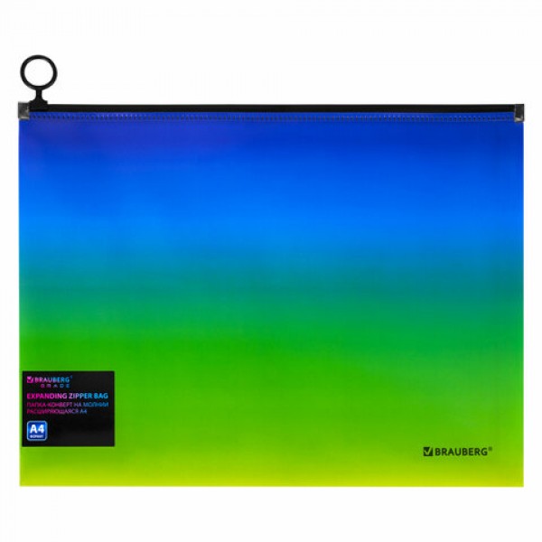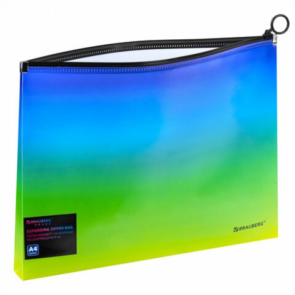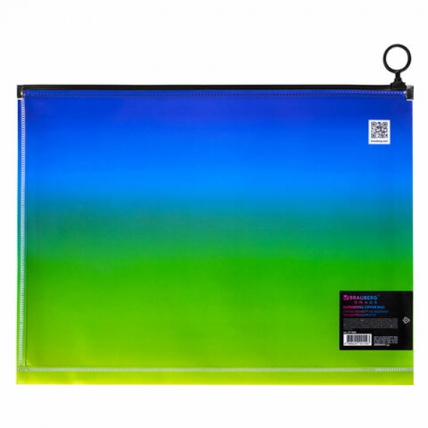 Папка-конверт расширяющаяся на молнии BRAUBERG 'Grade', А4, до 300 листов, зелено-голубой градиент, 0,18 мм, 271966